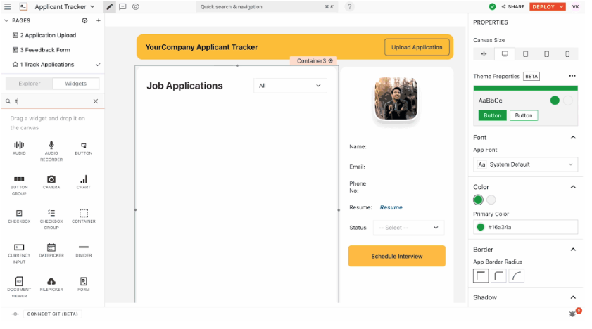使用拖放式 UI 构建器构建 UI。使用 45+ 预建、可自定义的小部件,包括表格、图表、列表、模态、表单等。