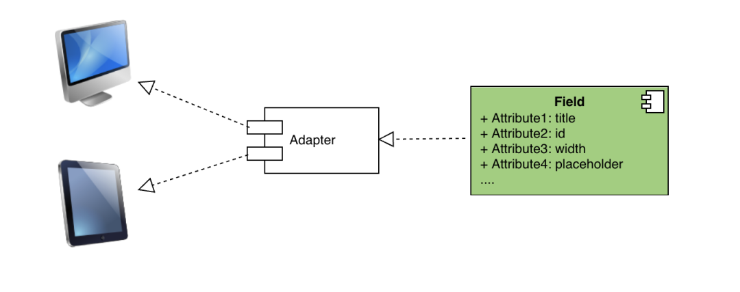 在一个 form 编辑器里边,主要操作的是一个元素,布局容器 (也是元素之一) 则是作为 Field 的承载。用下图表示一个 Field,Field 自身会有很多的属性。