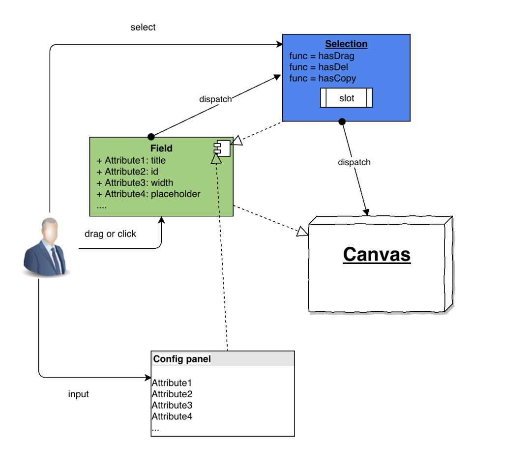 Field 经过用户的 click 或者拖拉拽的方式塞入 Canvas 画板