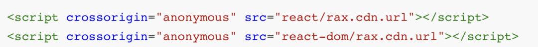 我们还需要根据我们使用的技术栈,在 html 中提前加载 react/rax 相关依赖的资源。