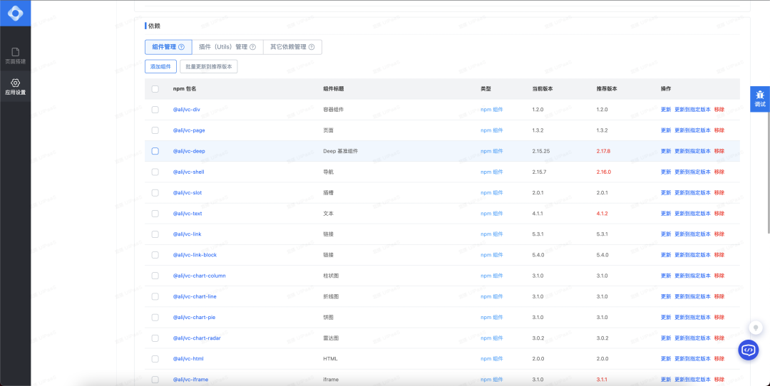 在阿里内部的低代码产品中的某低代码平台里面,有一个依赖管理页面,在这里我们可以新增组件,在新增组件之后进行打包构建。