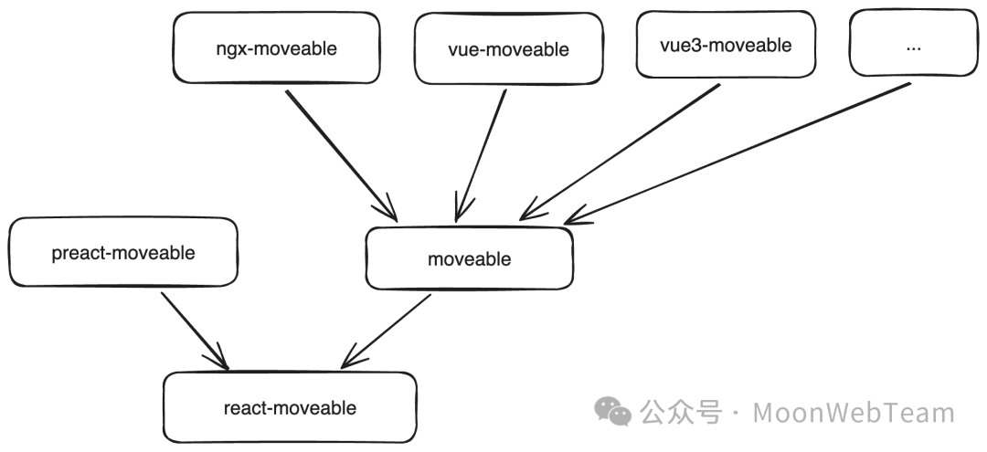 moveable 是一个支持多 UI 框架的库,react-moveable 是它的核心实现,其他 UI 框架的支持都是直接或间接通过 react-moveable 实现的。