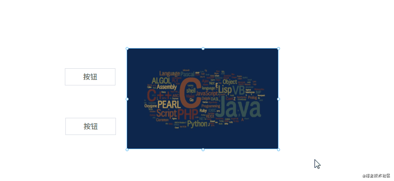细心的网友可能会发现,点击画布上的组件时,组件上会出现 8 个小圆点。这 8 个小圆点就是用来放大缩小用的。实现原理如下: