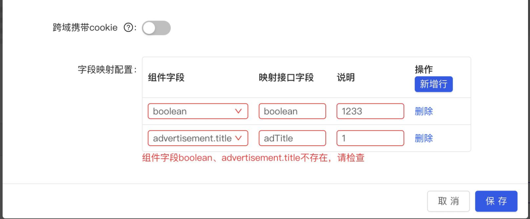 维护接口与组件内部暴露字段的映射关系,输入框会自动检测映射关系是否正确。