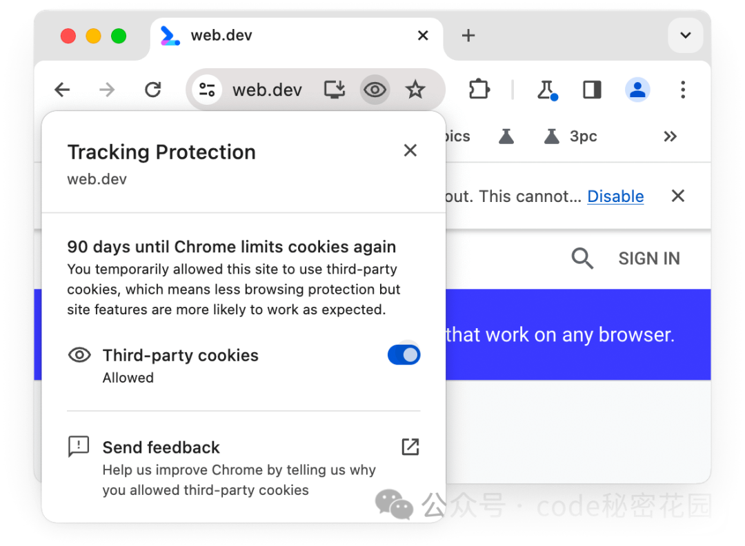 这个开关点击后可以允许指定域名继续使用三方 Cookie ,但是这个期限只有 90 天。