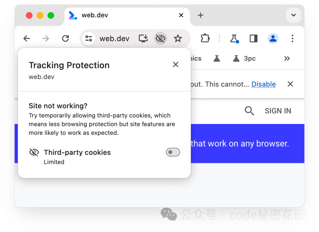 所以,如果大家的网站最近没有时间进行这些改造,大家可以在运行时来提示用户手动关闭三方 Cookie 的禁用策略。