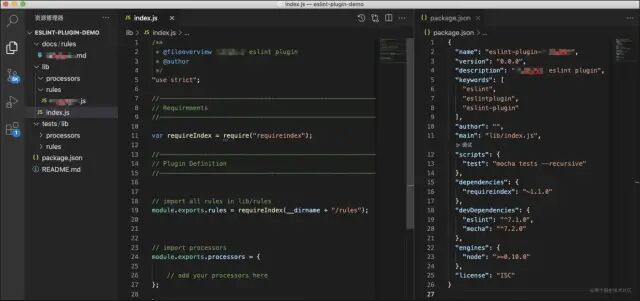 package.json 是 ESLint 插件 npm 包的说明文件,其中的 name 属性就是 ESLint 插件的名称,其命名规则为:eslint-plugin-*