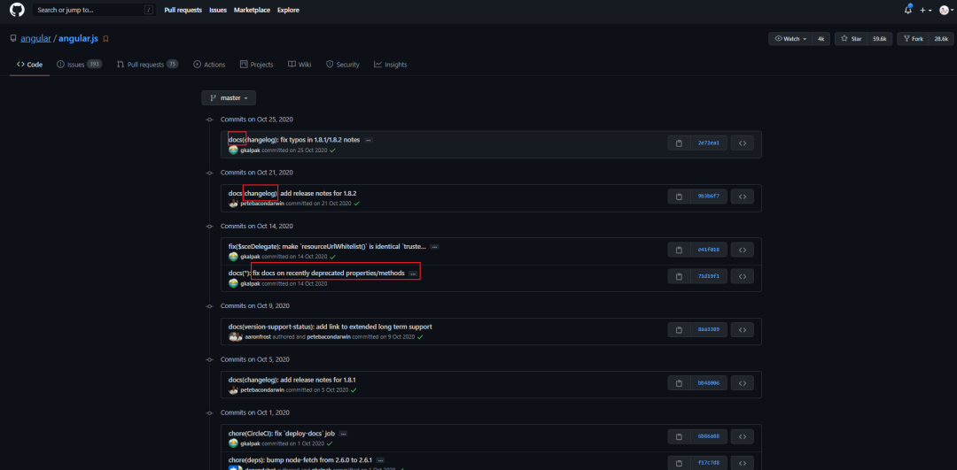 一个格式化 commit message 的工具,为什么需要这个工具,下面是 angular.js 开源项目的 commit message,很清楚明了是不是,几乎所有大项目和大公司都在使用这种 commit 规范。好处:
