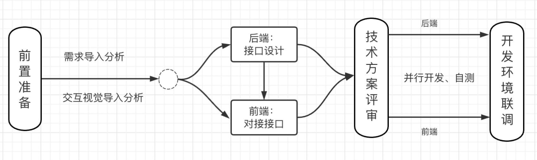 并行开发 、前后端自测:前后端并行开发,在此阶段前端可以 mock 数据进行页面渲染。
