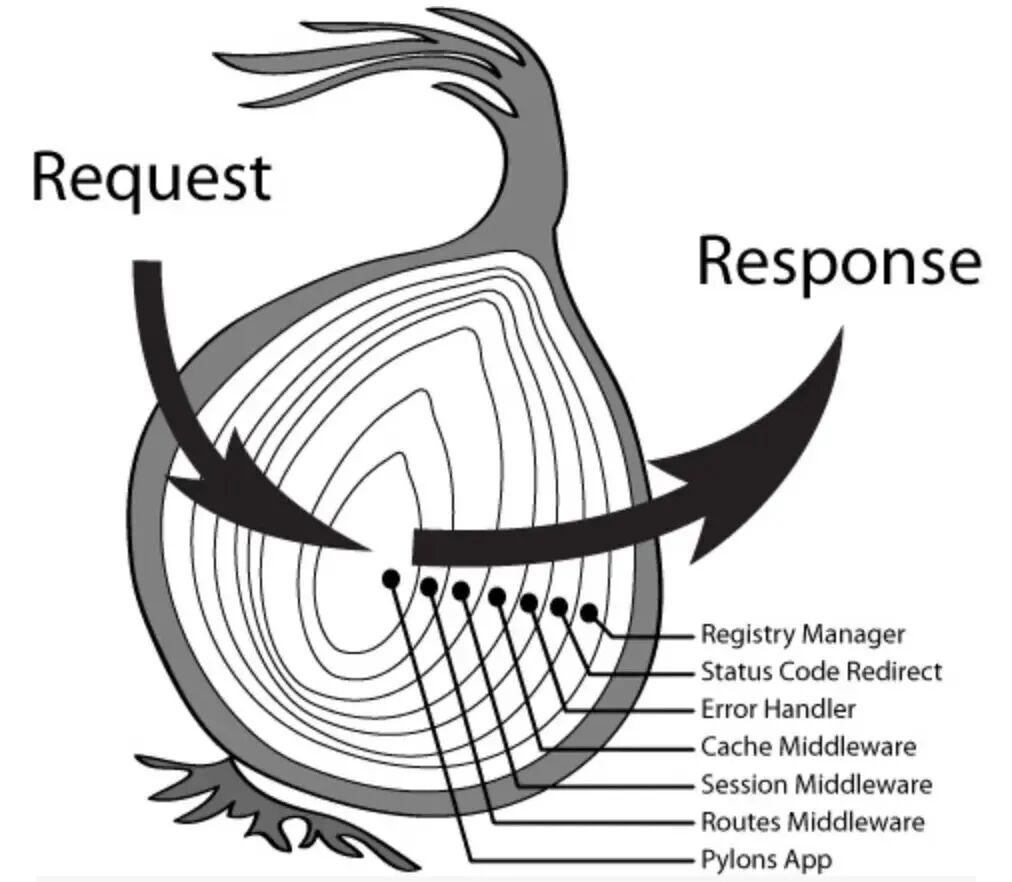 想象一下,一个洋葱的结构——由许多层组成,每剥开一层就能看到下一层。在洋葱模式中,每个中间件都像是洋葱的一层,请求从最外层开始传递,依次穿过每一层中间件,直到达到核心处理逻辑,然后再逐层返回,每一层都有机会对请求和响应进行处理。