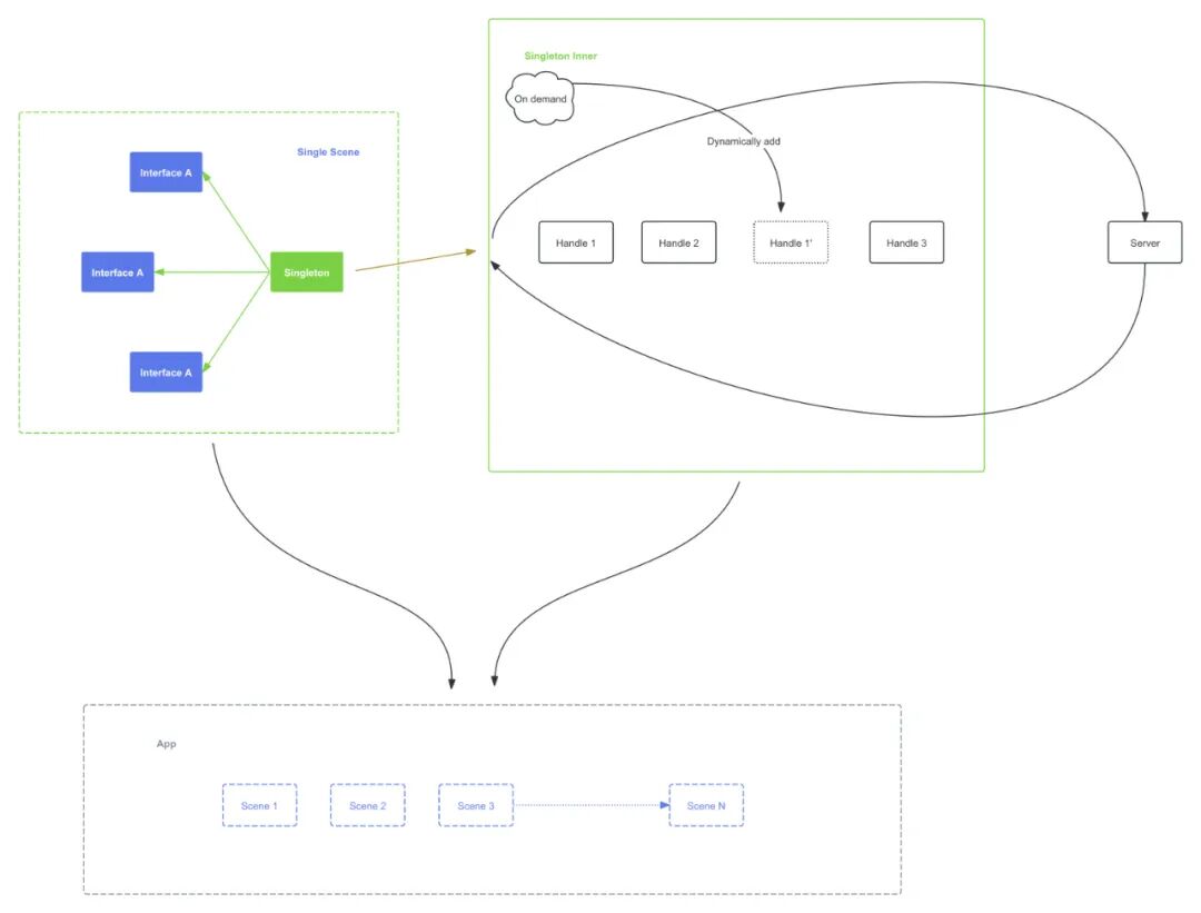 为了解决 B 站复杂的业务场景,我们先将应用拆成各个单一的场景。在各个单一的场景下,我们希望一个单例对应一个场景,并且我们考虑到业务的灵活多变性,需要提供集成插件式逻辑的能力。