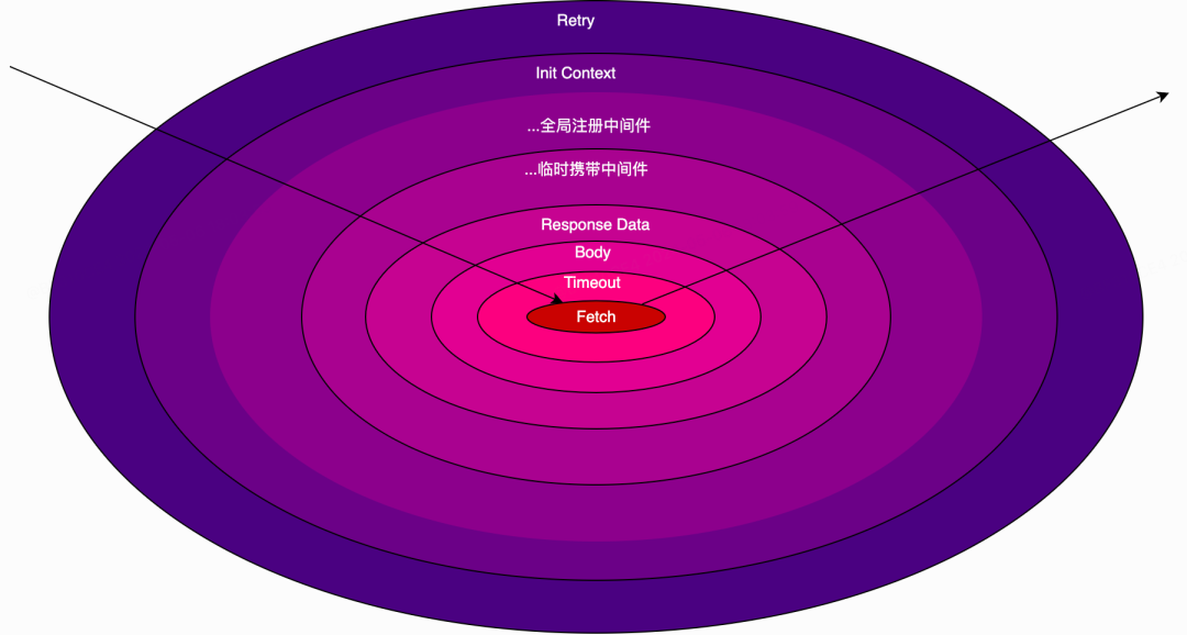 另外,我们区分了 Fetch 中间件和其他所有中间件,因为从根源上这两类是有区别的。其他所有中间件在顺序上,按照先全局后临时的方式排列,最后的,也是作为洋葱中心的就是 Fetch 中间件,因此在覆盖这些预设行为上,我们也做了不同的接口区分。