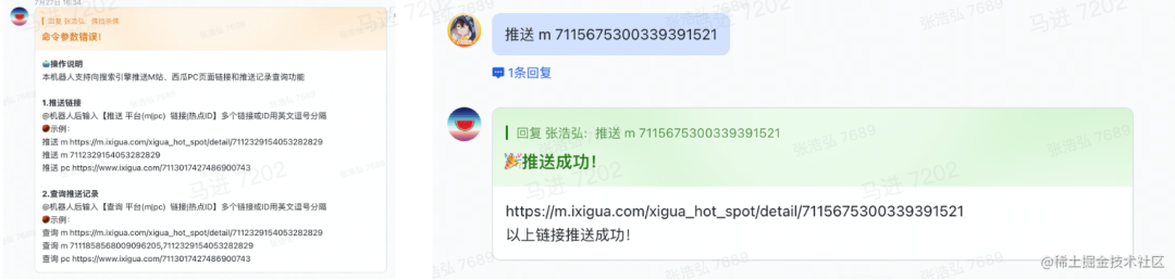 因此我开发了西瓜热点 SEO 机器人,利用飞书提供的企业机器人功能进行定制化开发,通过与机器人对话的形式,能够方便运营同学将新产生的热点快捷地进行推送。