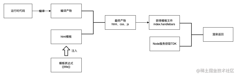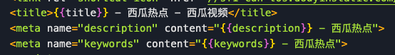 - 注入表达式: 由于在编译运行时代码时会利用到 html 模板,并将编译得到的 js、css 文件从 html 模板中引入,所以我们可以预先在 html 模板中注入模板语言表达式来占位 TDK,,,。