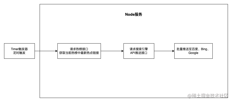 热点事件的发生时机较为随机,且具有较强的时效性,为了能够让搜索引擎更加快速地爬取和收录西瓜热点页面,利用 Timer 触发器,定时将热点页面通过 API 推送给搜索引擎。