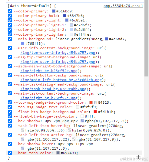 window.document.documentElement.setAttribute('data-theme', 'default')data-theme 会注入到全局的变量上,所以我们可以在任何地方获取定义的 css 变量