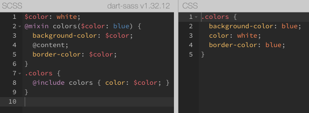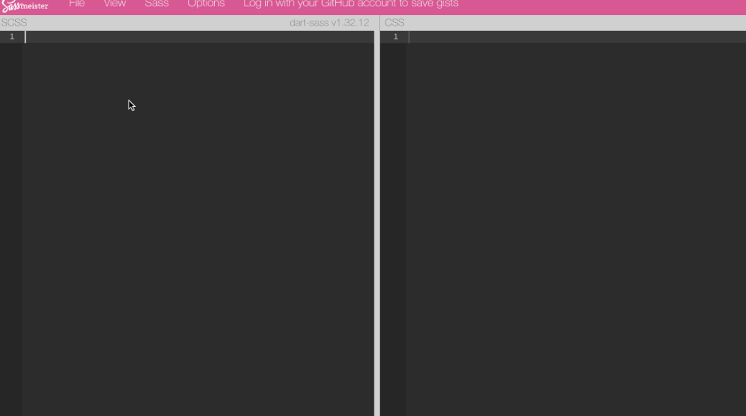 我们可以在这个网址 (https://www.sassmeister.com/) 在线查看编译的 SCSS 编译成 CSS 之后的代码。
