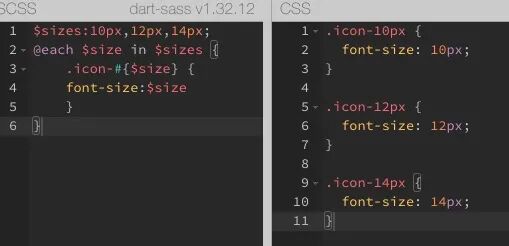 - 循环一个 list: 类名为 icon-10px 、icon-12px、icon-14px 写他们的字体大小写法就可以如下: