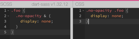 当一个元素的样式在另一个容器中有其他指定的样式时,可以使用嵌套选择器让他们保持在同一个地方。.no-opacity &相当于.no-opacity .foo。