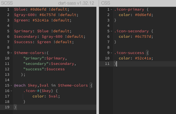 利用 SCSS 强大的函数功能遍历类名统一添加以自定义属性名前缀的命名空间,利用循环自动生成 CSS 样式。