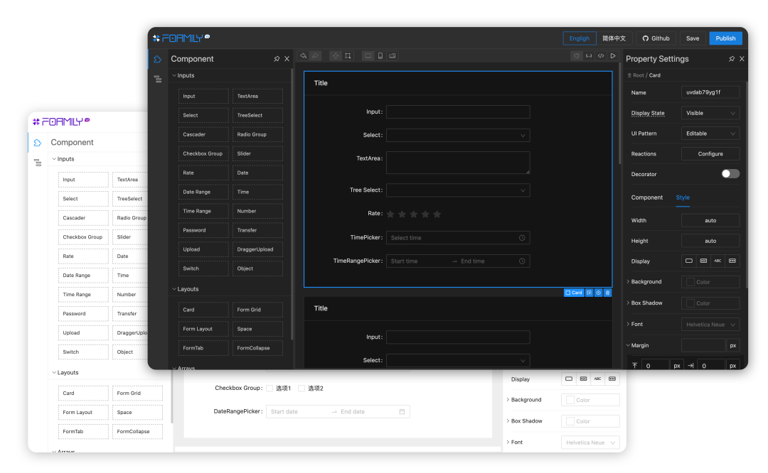 hi, 大家好, 我是小智, 今天又到了我们的分享时间. 之前和大家分享了很多可视化的前端项目和工程化实践, 今天继续和大家分享一款非常有价值的开源项目 Formily, 它可以帮助我们更高效的开发任何复杂的表单, 并且支持可视化搭建表单, 如下: