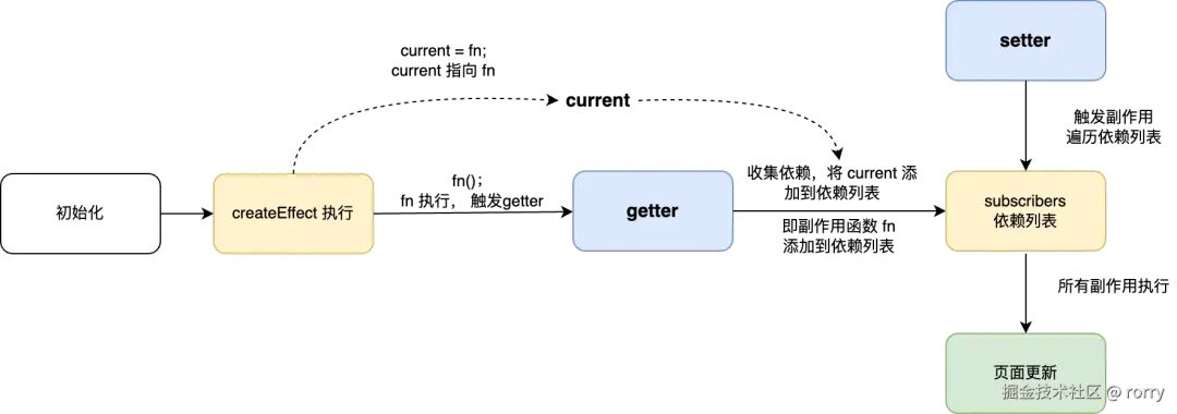 createEffect 执行时,会将 current 指向 createEffect 包裹的副作用函数 fn