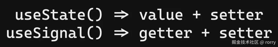 它和 useState 之间的主要区别在于 useSignal 返回一个 getter 和一个 setter,而 useState 返回一个 value 和一个 setter。