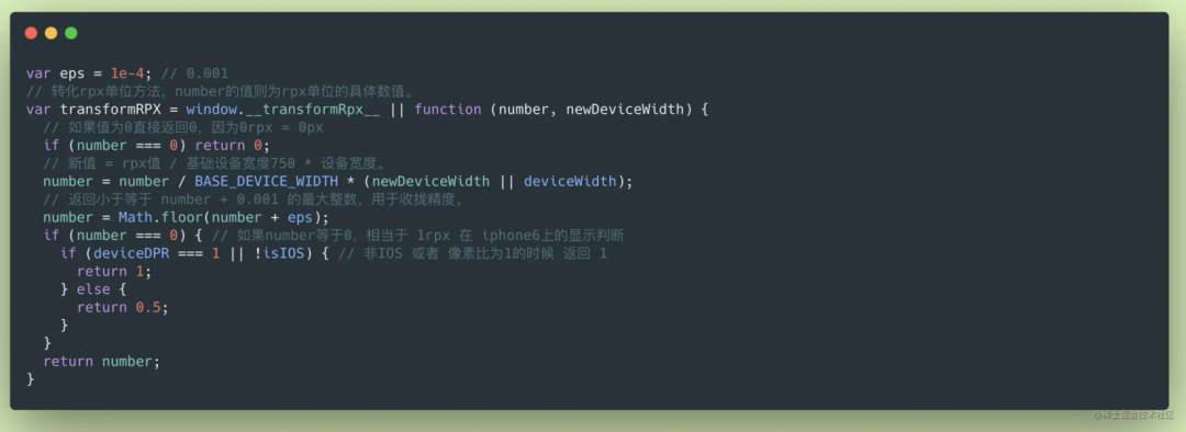 我们看它的这段源码,其实它与阿里的 flexible.js 方案是类似的,不同的是它做了一个精度收拢的优化,主要是为了解决 1px 的问题。