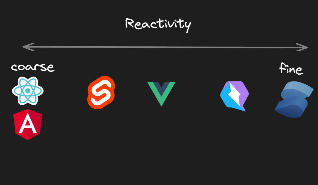 在响应式框架之间进行比较的一个维度是粗粒度与细粒度的响应性。