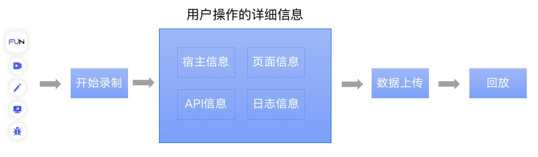 基于以上的述求,我们基于开源框架 rrweb,实现了从前台接入管理、后台回放管理及权限管控的一站式录制回放平台,接入简单,一键便可录制宿主信息、操作过程、接口信息、日志信息等数据。