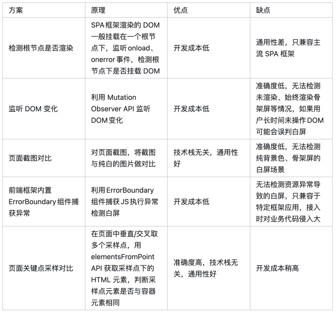本文首先介绍了前端白屏表现、白屏原因,以及修复白屏问题的业务价值。然后对比几种常见的白屏检测方案,并介绍了采样点检测方案的具体实现,包括采样点如何选取、白屏的判断标准与检测时机、微前端与 iframe 场景的兼容等。