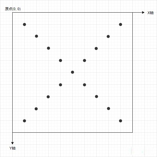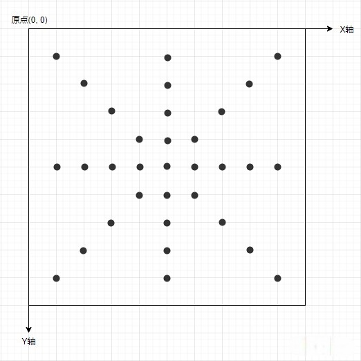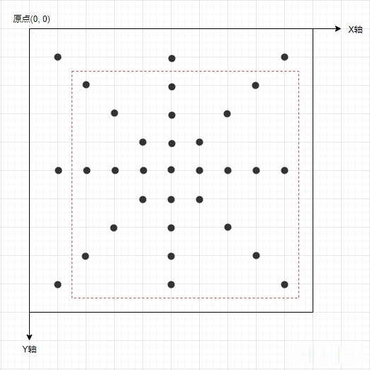 如上图所示,整个屏幕共 33 个采样点,其中内容区有 28 个。简单起见,检测白屏时,我们判断空白的采样点是否大于等于 28 个。采样点坐标的获取如下:
