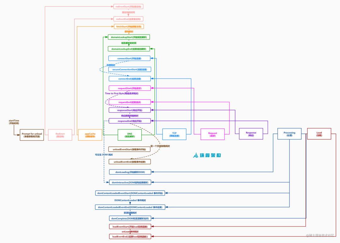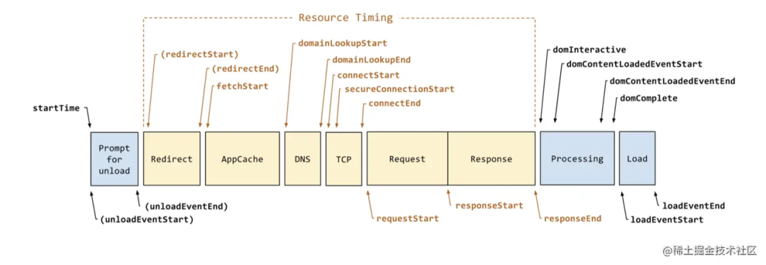 | appCache | 缓存耗时 | domainLookupStart – fetchStart | 读取缓存的时间 |