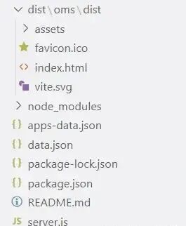 目录结构如图所示。server.js 为 node 服务;dist 文件夹中存放前端项目的打包文件,便于查找源代码;apps-data.json 存放监控的前端项目的基本信息;data.json 存放监控数据。