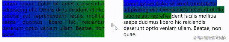 <p>Lorem .....</p><a>Lorem .....</a>p, a { color: #000; background: linear-gradient(90deg, blue, green); background-size: 100% 100%; background-repeat: no-repeat; transition: all 1s linear;}p:hover ,a:hover { background-size: 0 100%;}效果如下: