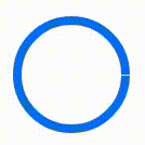 <svg with='200' height='200' viewBox="0 0 100 100" > <circle cx="50" cy="50" r="25" fill="transparent" stroke-width="4" stroke-dasharray="50" stroke="#0079f5" ></circie></svg>stroke-dashoffset属性可以使圆的短划线和缺口产生偏移,添加 @keyframes 动画后能够实现从无到有的效果,stoke-dashoffset 参考资料 [6]