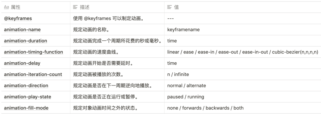 Animation 常用动画属性: _https://www.w3school.com.cn/cssref/index.asp_