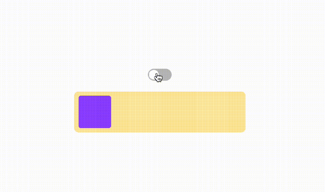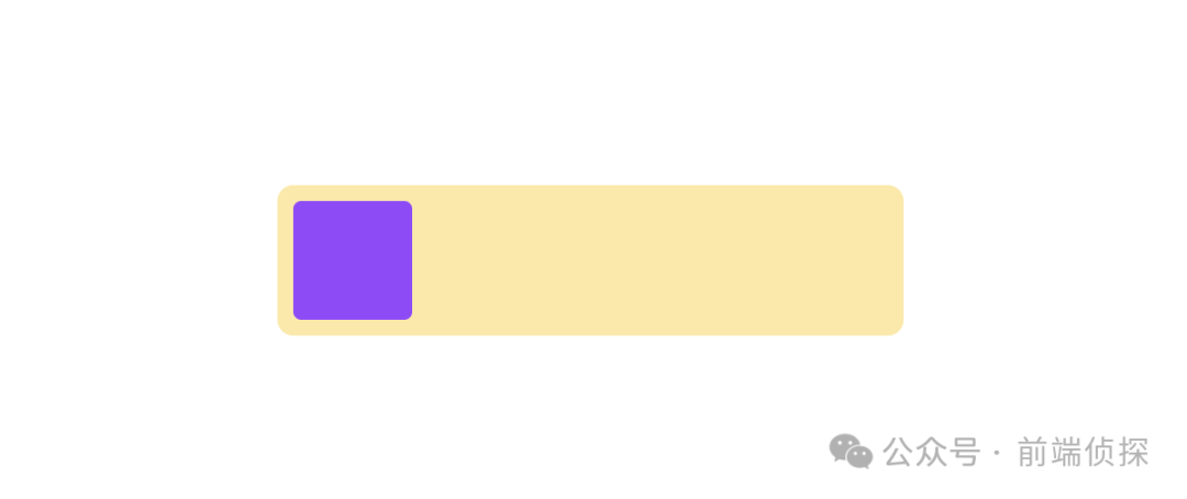 .con{ width: 300px; border: 8px solid transparent; background-color: #FFE8A3; border-radius: 8px;}.item{ width: 60px; height: 60px; border-radius: 4px; background-color: #9747FF;}现在效果如下,那么如何从左平滑的向右移动呢?