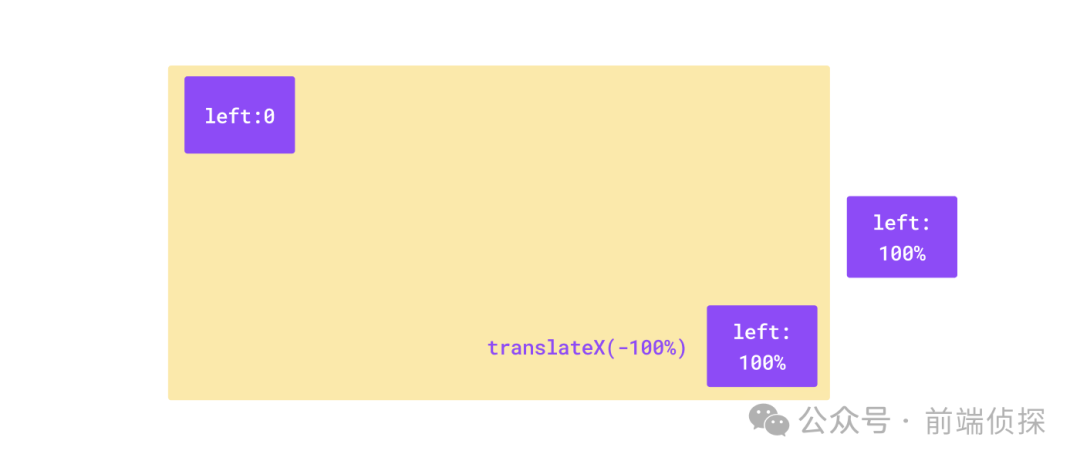 left百分比偏移量是相对父级的,直接使用100%会导致自身脱离父级范围translate百分比偏移量是相对于自身的,使用-100%可以消除相对定位的影响flex布局可以利用容器填充剩余空间的原理实现居左或者居右背景位置排除了背景尺寸的影响,