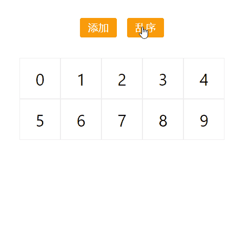 这是一个可添加的数字的随机乱序列表。首先想一想,我们第一直觉可能会这样做:将这些数字的 DOM 节点用绝对定位来布局,数字变化后计算 top、left 的值,再配合 transition 实现该动画。这种方式看似简单,其实内部要维护各种位置信息,所有坐标都需要手动管理,相当繁杂,非常不利于后期扩展。如果这些节点换成高度不固定的图片,那计算量可想而知。
