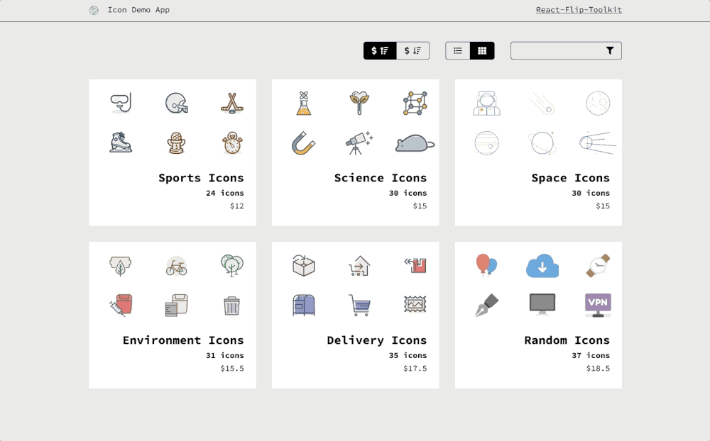 react-flip-toolkit[10] 一款有 3.4K Star FLIP 的库。实现了你所能想到的功能。