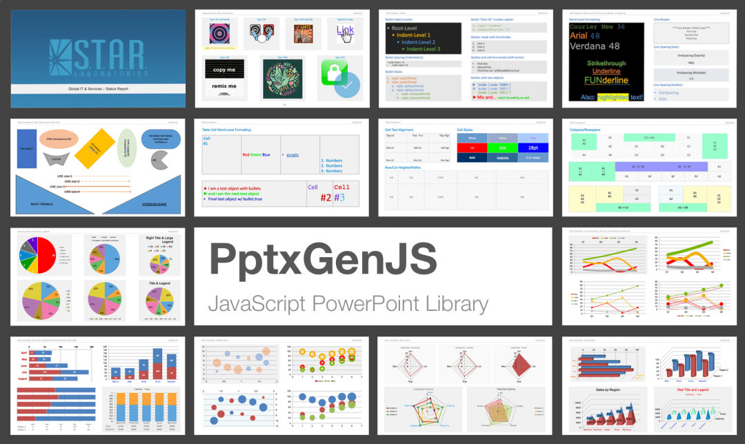 **Github(⭐️ 1.6k):**https://github.com/gitbrent/PptxGenJS