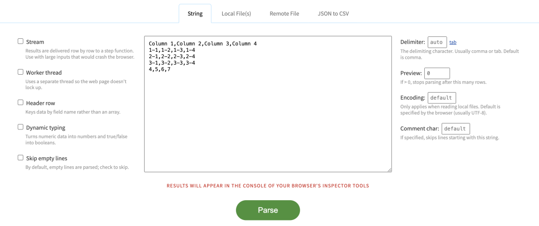PapaParse 是一个快速而强大的 CSV(分隔文本)解析器,可以优雅地处理大文件和格式错误的输入。