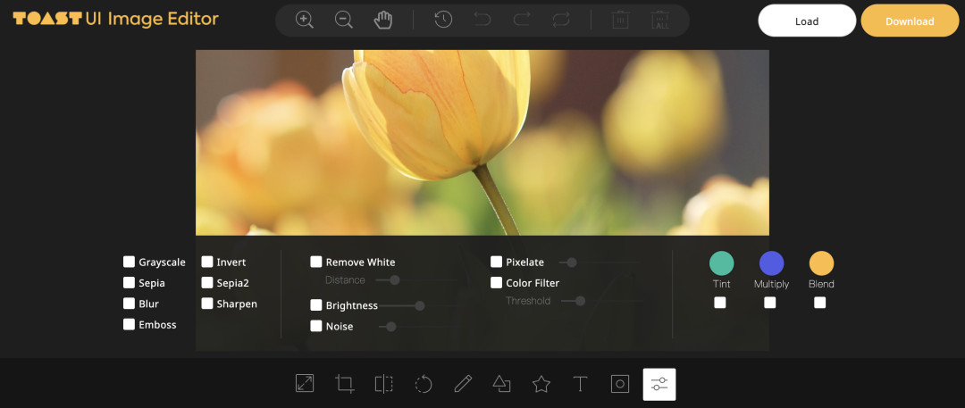 tui.image-editor 是一个使用 HTML5 Canvas 的全功能图像编辑器。它易于使用并提供强大的过滤器。