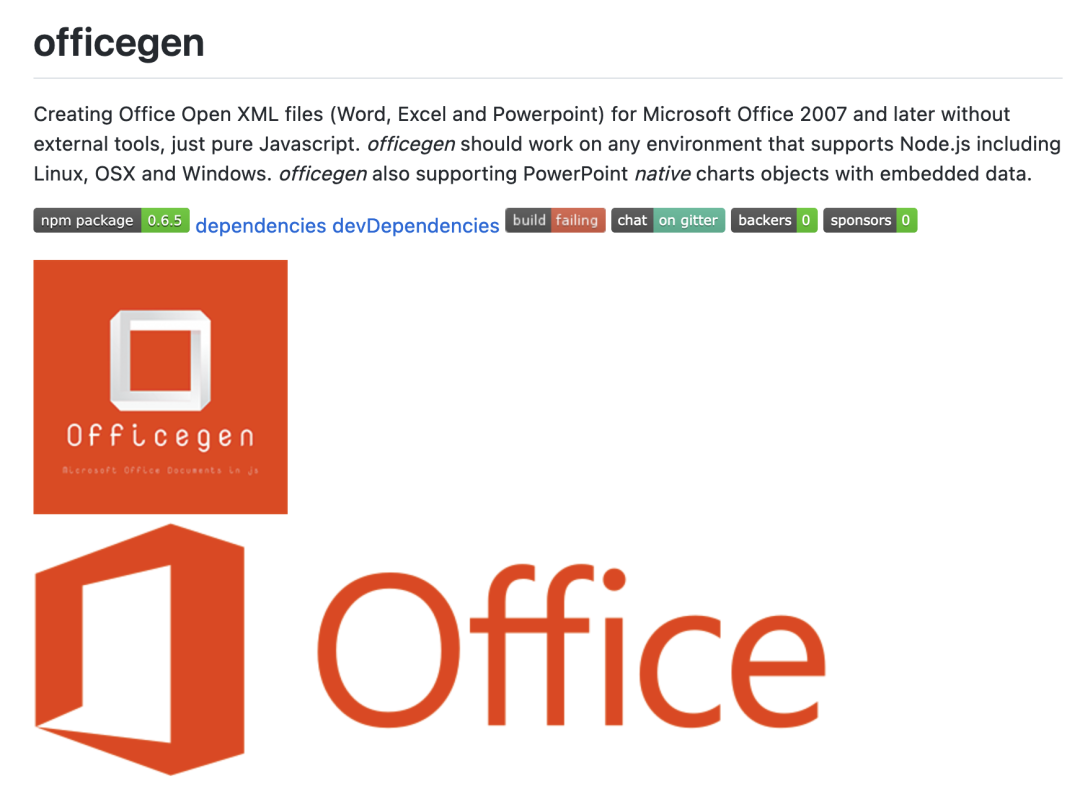 **Github(⭐️ 2.4k):**https://github.com/Ziv-Barber/officegen