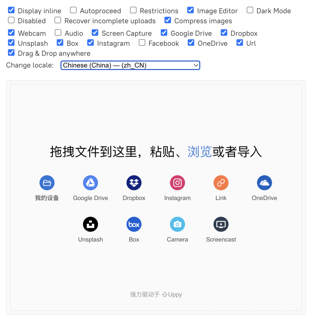 Uppload 是一个更好的 JavaScript 图片上传器。它具有 30 多个插件的高度可定制性,完全免费和开源,并且可以与任何文件上传后端一起使用。