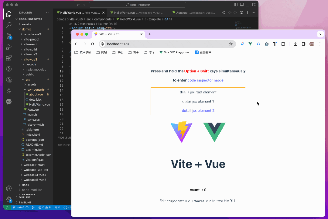 code-inspector-plugin 是一款开源的基于 webpack/vite/rspack/nextjs/nuxt/umijs plugin 的提升开发效率的工具,点击页面上的 DOM,它能够自动打开你的 IDE 并将光标定位到 DOM 对应的源代码位置。