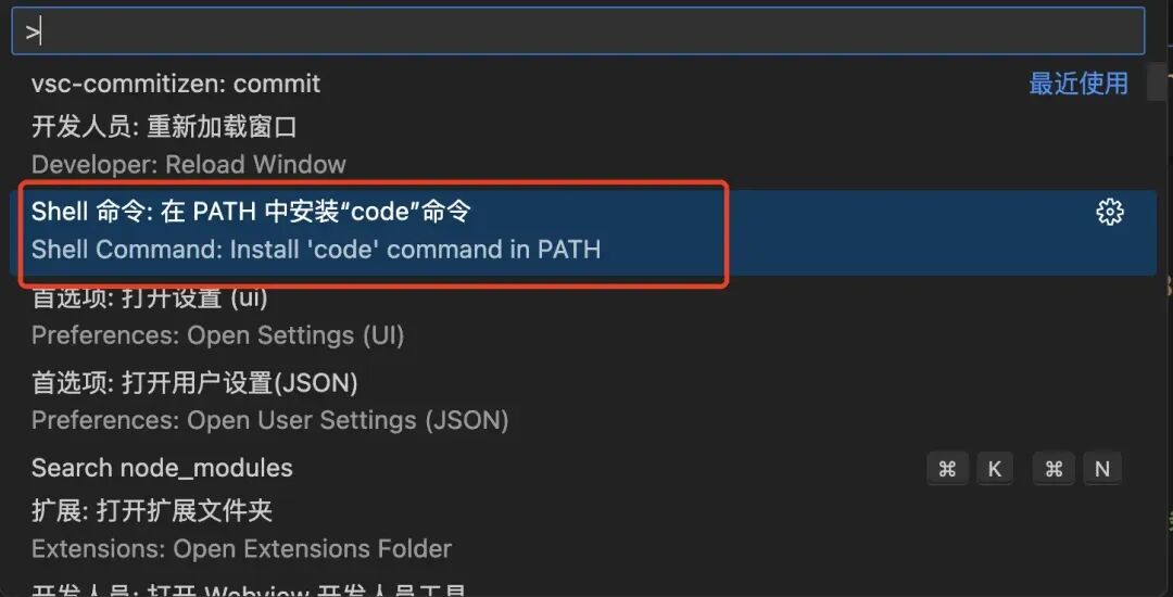 解决:cmd+shfit+p 选择 shell 命令: 在 path 中安装 code 命令