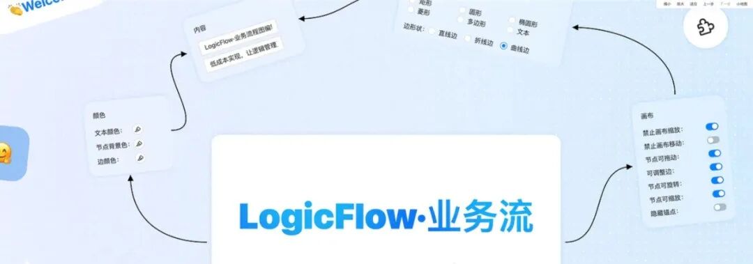 LogicFlow 是一个流程图编辑框架,提供交互和编辑的基本功能,以及灵活的节点定制和插件机制,满足了类似流程图的业务需求 — (https://github.com/didi/LogicFlow)。