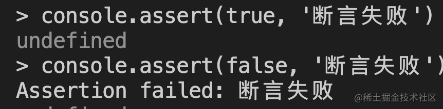 console.assert 就是第一个参数的值为 false 的时候,才输出第二个参数的信息: